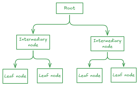 Both types of indexes are represented in a BTree structure, as mentioned earlier. A binary tree structure looks like this: